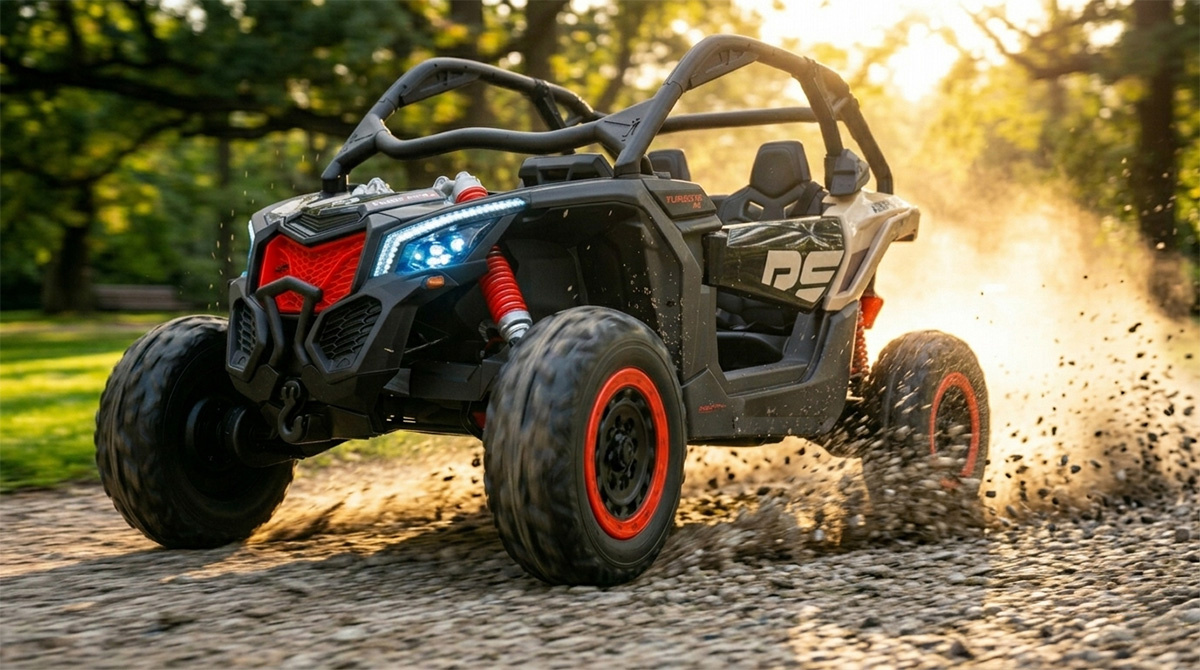 Buggy Maverick Turbo RR Ultimate to rozbudowana, dopracowana wersja popularnego modelu, zaprojektowana z myślą o jeszcze większym komforcie, lepszej przyczepności i bardziej zaawansowanej jeździe terenowej. To pojazd dla dzieci, które oczekują czegoś więcej – nie tylko prędkości, ale prawdziwego doświadczenia jazdy.